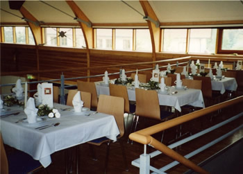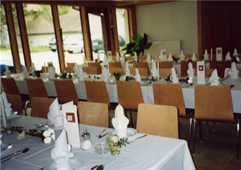 Durch die variable Raumgröße sind Hochzeiten bis max. 200 Gäste möglich. Ohne Tanzfläche können bis zu 220 Personen untergebracht werden.